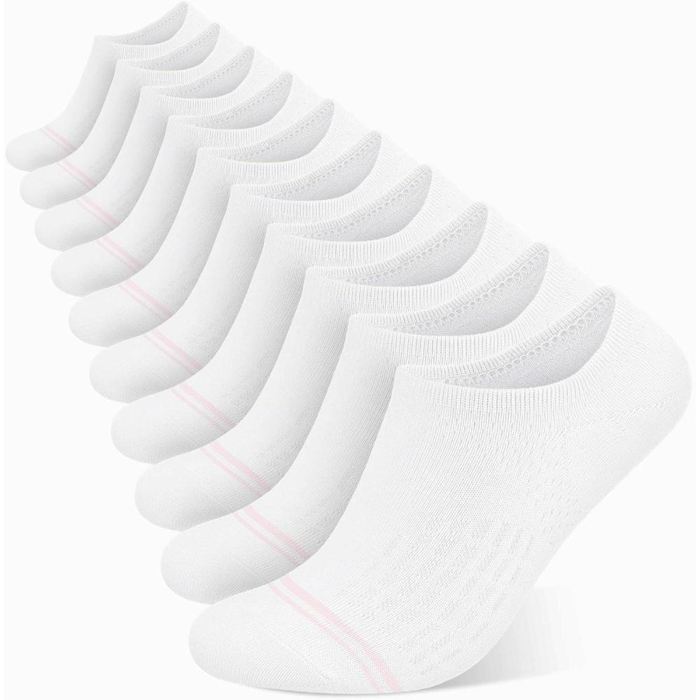 wernies No Show Socks Womens 10 Pairs Low Cut Ankle Socks with Non Slip Casual Invisible Liner Boat 5-8/8-11(10 Pairs White)